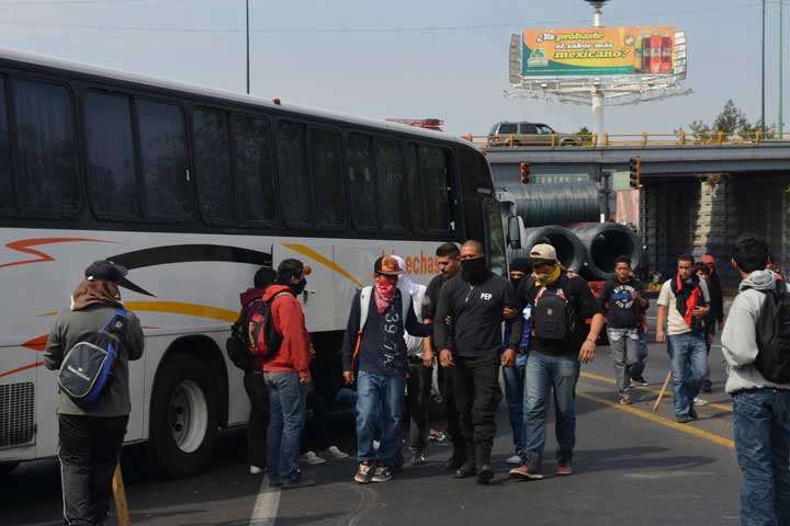 Tras ser detenidos para evitar que llegaran a Morelia a movilizarse, los normalitas tuvieron que entregar uno de los camiones de la línea Purépecha en los que se trasladaban ya que tenía reporte de robo.
