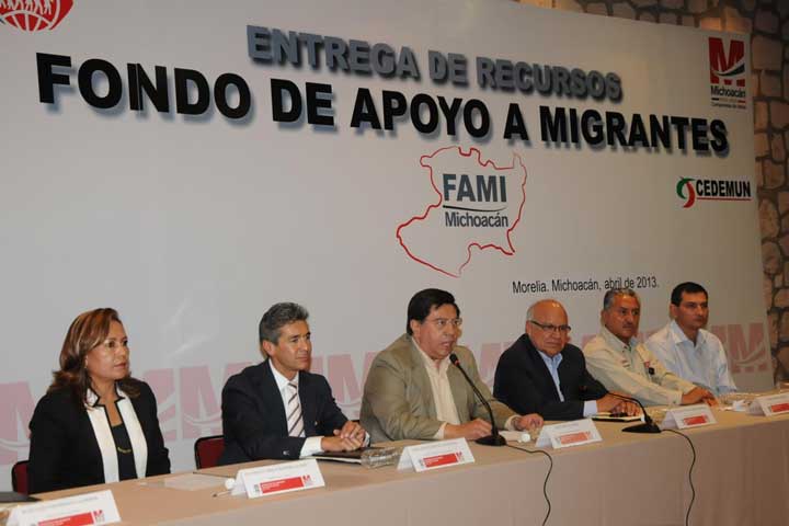 En reconocimiento al esfuerzo y sacrificio de los connacionales, el secretario de Gobierno, Jesús Reyna García y el titular de la Secretaría del Migrante (Semigante), Luis Carlos Chávez Santacruz, entregaron 11 millones 982 mil pesos a 33 municipios michoacanos del Fondo de Apoyo al Migrante (FAMI), a fin de consolidar proyectos de autoempleo y mejoramiento de vivienda en beneficio de los migrantes y sus familias.
