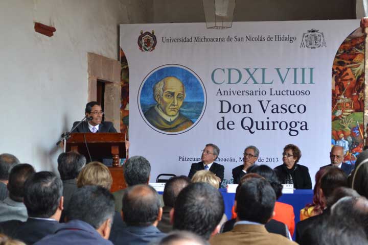 La Universidad Michoacana de San Nicolás de Hidalgo (UMSNH), recordó el CDXLVIII aniversario luctuoso de su fundador, Don Vasco de Quiroga, con un homenaje en la ciudad de Pátzcuaro, encabezado por el rector Salvador Jara Guerrero, y representantes del municipio y de los poderes Ejecutivo y Judicial.