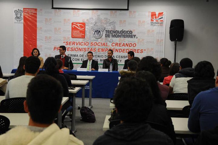 Autoridades de la Comisión Ejecutiva del Servicio Social de Pasantes (CESSP) del gobierno estatal y del Instituto Tecnológico de Estudios Superiores de Monterrey, firmaron un convenio de colaboración denominado, "Creando profesionistas emprendedores", para que a través de la formación de coordinadores de incubadoras sociales, se gestionen proyectos de beneficio social al interior del estado.
