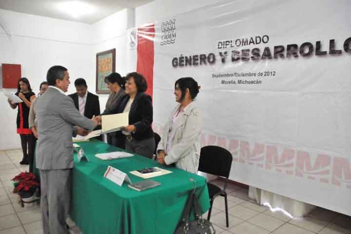 Servidoras y servidores públicos de alrededor de 60 dependencias e instituciones concluyeron el diplomado "Género y Desarrollo" que realizó la Secretaría de la Mujer (SEMUJER) y el Centro de Investigación y Desarrollo del Estado de Michoacán (CIDEM).