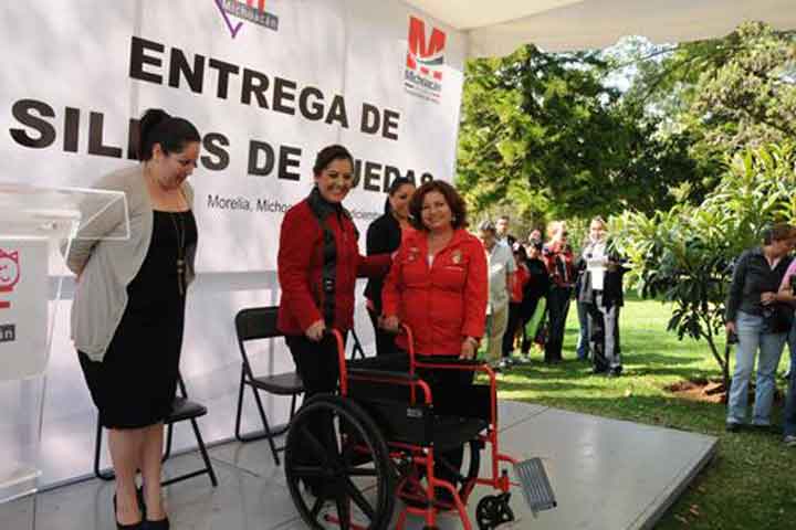 Como muestra del apoyo que se brinda a las personas con discapacidad, la presidenta del Sistema DIF Michoacán, Patricia Mora de Vallejo, entregó este día 600 sillas de ruedas en una primera etapa a los 113 municipios.