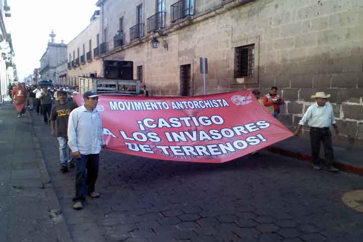 El plantón que instaló este jueves el Movimiento Antorchista en la ciudad de Morelia, fue levantado esta noche, luego del compromiso que hiciera la Secretaría de Gobierno de solucionar el problema de las 40 familias de la colonia La Antorcha, del municipio de Lázaro Cárdenas, quienes fueron despojadas de sus predios por un grupo armado.