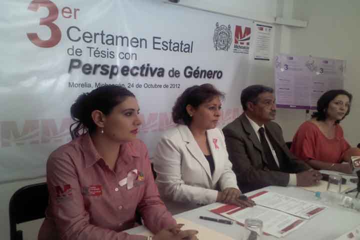 La Secretaría de la Mujer en conjunto con la Universidad Michoacana, anunció el Tercer Certamen Estatal de Tesis con Perspectiva de Género, cuyo objetivo es obtener el beneficio social en función de los temas diferentes que se manejan en la vida académica a favor de las mujeres.