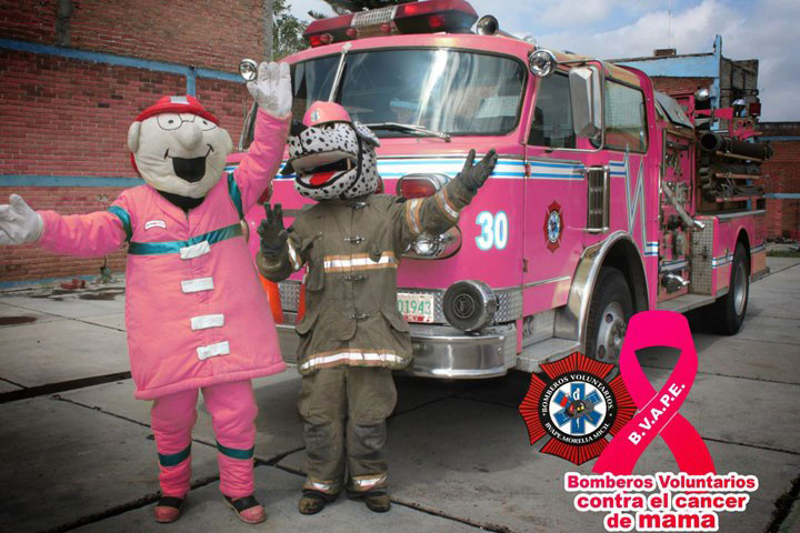 Integrantes del grupo de Bomberos Voluntarios y Asesoría Profesional en Emergencias Médicas (BVAPE), se sumarán hoy a la lucha contra el cáncer de mama, mediante diversas actividades que realizarán en la Plaza de Armas, en el Centro Histórico de Morelia.