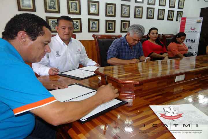 El director general del Instituto de Capacitación para el Trabajo en el Estado de Michoacán (Icatmi), Bertín Cornejo Martínez, refrendó su compromiso de capacitar a los habitantes del municipio, así como a los carpinteros de la región, al signar un Convenio de Colaboración con el presidente municipal de Coalcomán, Rafael García Zamora.