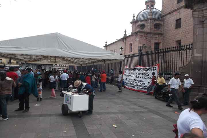 Después de haber protagonizado una marcha esta mañana, integrantes de Antorcha Campesina, se instalaron en plantón indefinido en la Plaza Melchor Ocampo, tal y como lo habían advertido la semana pasada y hoy mismo durante la movilización, debido a la falta de una respuesta a sus demandas por parte de las autoridades de la Secretaria de Urbanismo y Medio Ambiente.