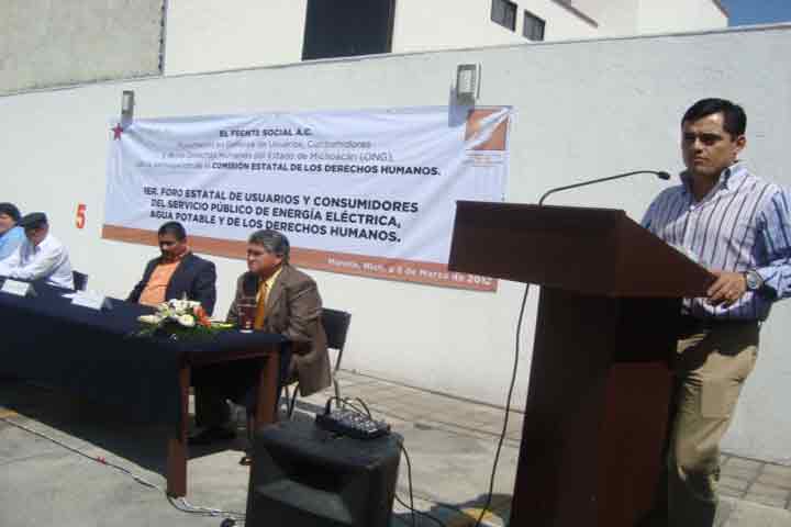 NOTICIAS 05/03/2012 Se realiza foro estatal sobre derechos humanos en servicios básicosPara informar a usuarios sobre los servicios de agua potable y energÃa eléctrica; el Frente Social A.C realizó el primer Foro Estatal de Usuarios y Consumidores del Servicio Público de EnergÃa Eléctrica, Agua Potable y de los Derechos Humanos.
