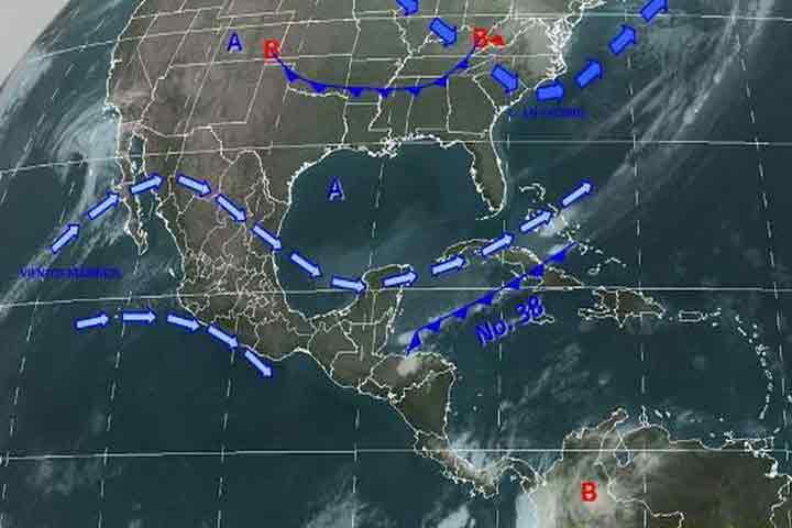 En su aviso más reciente, el organismo reportó que el sistema frontal en interacción con una baja presión de niveles medio y alto, mantendrá cielo nublado con precipitaciones ligeras a moderadas en el norte y noreste del territorio.
