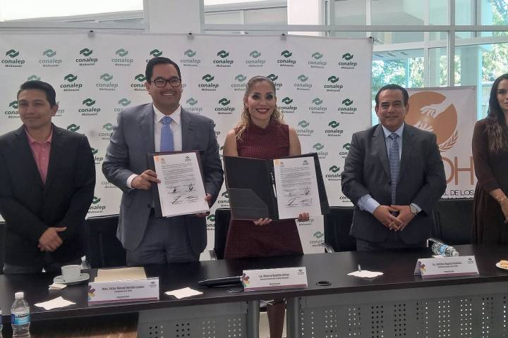 En las instalaciones del edificio central del CONALEP, el Ombudsman michoacano, Víctor Manuel Serrato Lozano y la directora general del subsistema educati... Ver más...