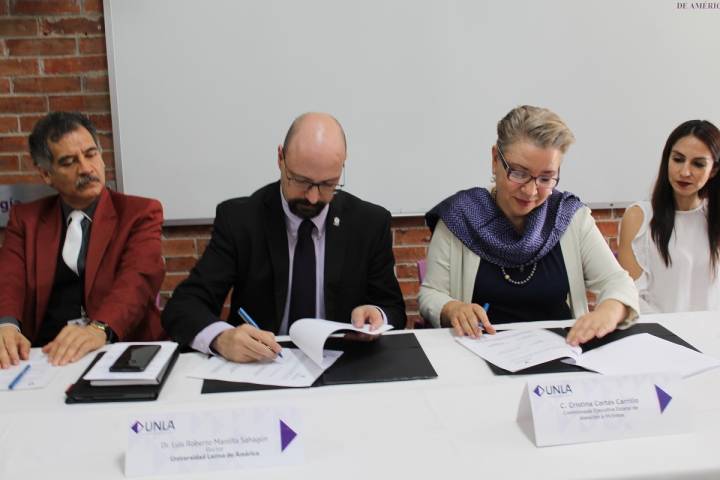 Para aprovechar las fortalezas y recursos institucionales en beneficio de quienes han sido víctimas de delito o de violaciones a derechos humanos en Michoacán, este martes firmaron convenio de colaboración la Comisión Ejecutiva Estatal de Atención a Víctimas (CEEAV) y la Universidad Latina de América (UNLA).