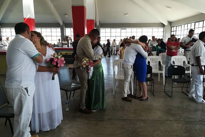 En ceremonia colectiva de matrimonio, seis parejas, en su mayoría conformadas por un interno del Centro Penitenciario "Lic. David Franco Rodríguez", se dieron el "sí" ante el juez.