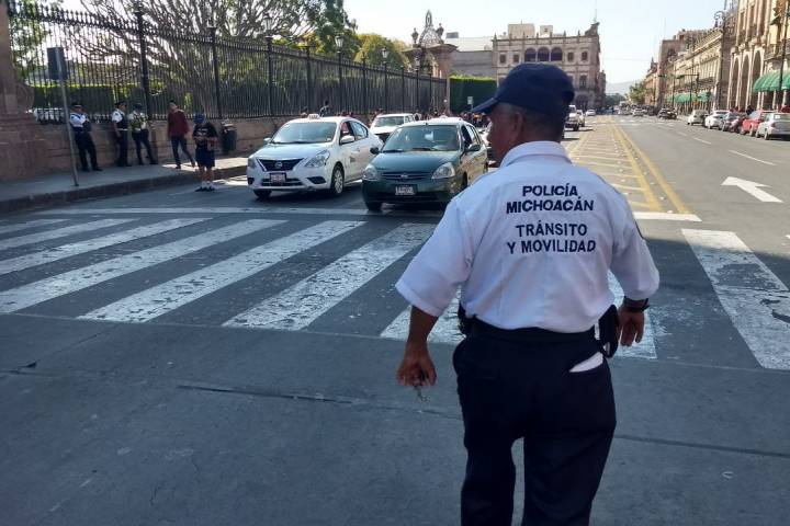 En la capital michoacana, los agentes de la Dirección de Tránsito y Movilidad brindan apoyo y orientación a conductores para agilizar el flujo vehicular en las zonas afectadas por los manifestantes.