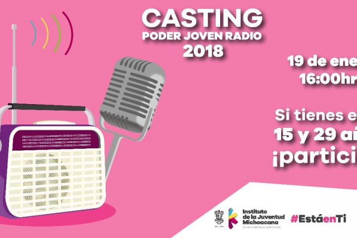 NOTICIAS 15/01/2018Convoca IJUMICH a jóvenes para participar en programas de radio El Instituto Mexicano de la Juventud (IMJUVE), a través del Instituto de la Juventud Michoacana (IJUMICH) invitan a las y los jóvenes de entre 15 y 29 años a participar en el proceso de selección para formar parte de la Red Nacional Poder Joven Radio y TV 2018, programa mediante el cual las y los beneficiarios colaborarán en emisiones radiofónicas durante un año.