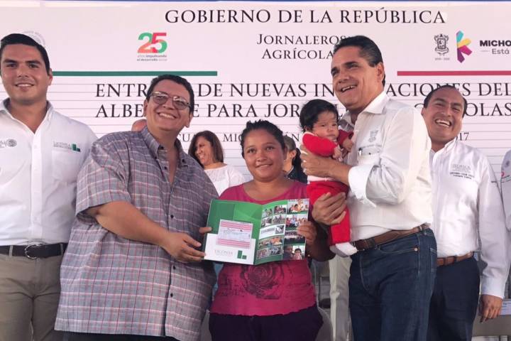 Durante la inauguración del albergue para los jornaleros, el Gerente Estatal de LICONSA, Sergio Flores Luna; en compañía del Gobernador de Michoacán, Sil... Ver más...