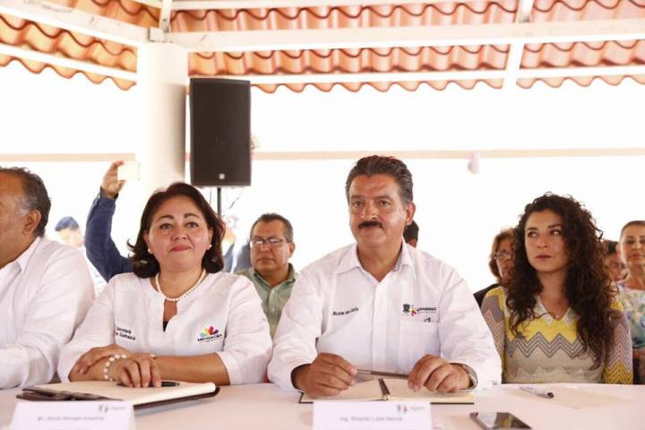 En el Jardín de Niños "Mariano Aguilera Cerda" en Taretan, Rocío Beamonte fue recibida por el presidente municipal, Alejandro Chávez Zavala y María Elena Dimas Vargas, presidenta del DIF municipal de Taretan... Ver más...