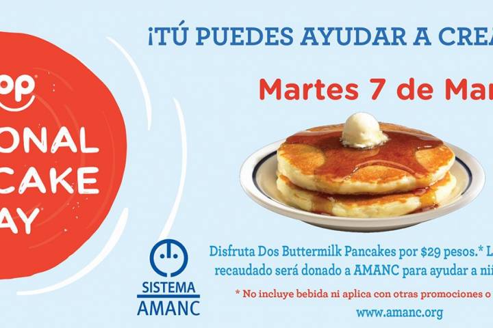 En su compromiso con la sociedad y en la búsqueda de lograr cada día más sonrisas en las familias, IHOP México, por cuarto año consecutivo presenta National Pancake Day, iniciativa que se llevará a cabo el próximo 7 de marzo y tiene como objetivo apoyar a los niños que padecen cáncer a través de la organización sin fines de lucro AMANC (Asociación Mexicana de Ayuda a Niños con Cáncer). Este próximo 7 de marzo, por cada asistente...