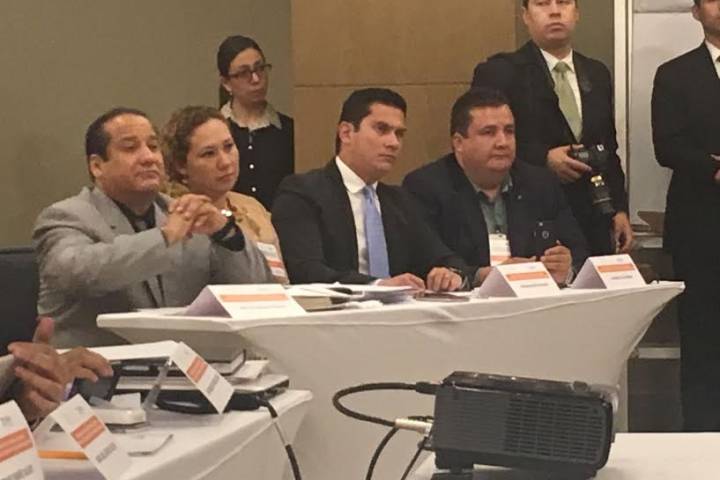Los comisionados michoacanos Selene Vázquez Alatorre, Salvador Ceja Barrera y Abraham Montes Maga... Ver más...