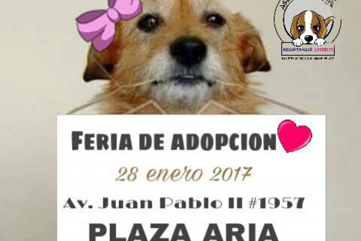 NOTICIAS 27/01/2017Adoptamor realizará una Feria de Adopción de mascotas La asociación animalista Adoptamor llevará a cabo éste sábado una Feria de adopción de Mascotas, la cual se realizará en la Plaza Aria ubicada en la avenida Juan Pablo II de las12 a las 17 horas.
