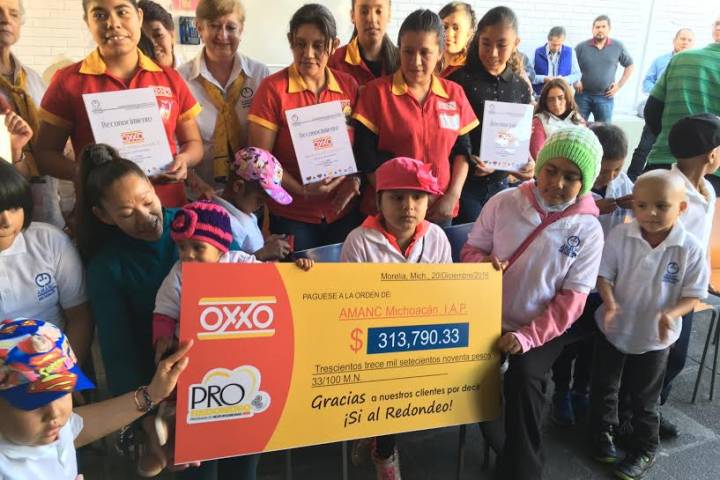 NOTICIAS 21/12/2016AMANC Michoacán recibe el redondeo OxxoGracias al apoyo de cientos de michoacanos que dicen "Si al redondeo" la tienda Oxxo entregó a la Asociación Mexicana de Apoyo a Niños con Cáncer en Michoacán (AMANC), una recaudación de $313,790.33, reunidos durante la campaña del mes de septiembre a noviembre de este año, con la participación de 260 tiendas.