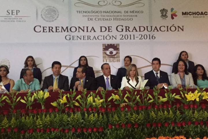 NOTICIAS 07/10/2016Preside Cedemun ceremonia de graduación de alumnos del ITSCH Con la representación del Gobernador Silvano Aureoles Conejo, el vocal ejecutivo del Centro Estatal para el Desarrollo Municipal (Cedemun), Carlos Paredes Correa, y el presidente de la Mesa Directiva del Congreso del Estado, Pascual Sigala Páez, encabezaron la ceremonia de graduación de 216 alumnos del Instituto Tecnológico de Ciudad Hidalgo (ITSCH), generación 2011-2016.