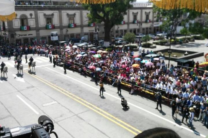 Poco menos de una hora duró el desfile cívico militar del 206 Aniversario del Inicio de la Gesta Heroica de la Independencia de México en Morelia, donde participaron autoridades, estudiantes, elementos de la Policía Federal, Militares y agrupamientos de emergencia, así como jinetes y escaramuzas.