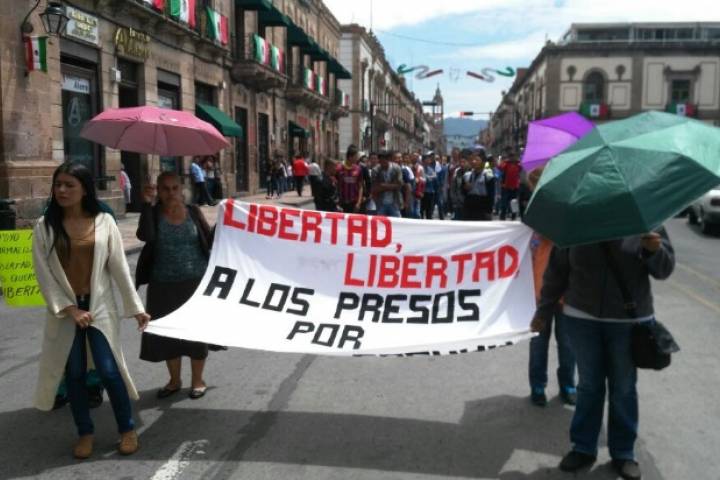 NOTICIAS 06/09/2016Madres de normalistas presos "no sabían las actividades de sus hijos"Es martes, estudiantes de las escuelas Normales de Michoacán, marcharon en el centro histórico en exigencia de la liberación de los ocho jóvenes que aún permanecen detenidos en el Penal de Mil Cumbres.