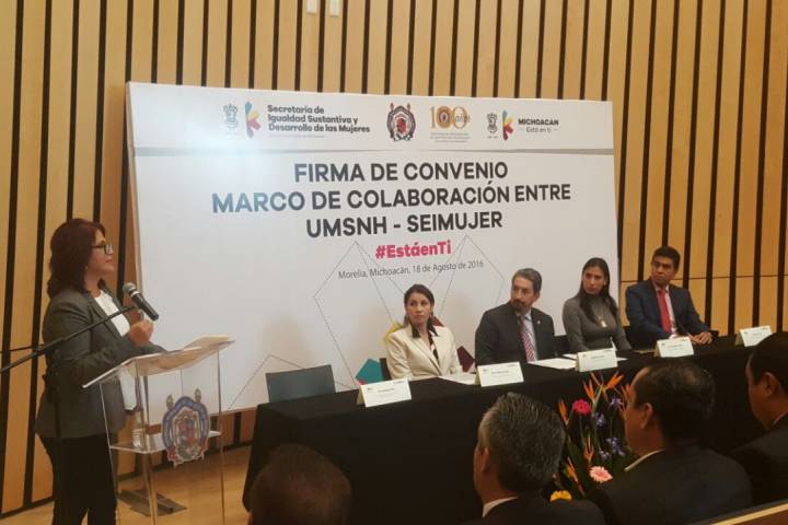 NOTICIAS 18/08/2016Seimujer y UMSNH unen esfuerzos a favor de la igualdad sustantivaPara ampliar, fortalecer y consolidar los lazos de colaboración, la SecretarÃa de la Igualdad Sustantiva y Desarrollo de las Mujeres Michoacanas (Seimujer) y la Universidad Michoacana de San Nicolás de Hidalgo (UMSNH) firmaron un convenio de colaboración para apoyar, asesorar y promover la realización de programas y proyectos que incentiven la igualdad sustantiva, los derechos humanos con perspectiva de género y el desarrollo de las mujeres... Ver más...