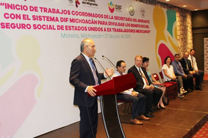 NOTICIAS 27/07/2016Semigrante y DIF Michoacán unen esfuerzos para difundir beneficios del seguro social de EU La Secretaría del Migrante (Semigrante) y el Sistema para el Desarrollo Integral de la Familia (DIF) Michoacán unen esfuerzos para informarles a los adultos mayores que tengan 62 años cumplidos o más que emigraron a Estados Unidos y hayan trabajado por más de diez años con un número de seguro social válido, que tienen derecho a recibir una pensión del seguro social estadounidense.