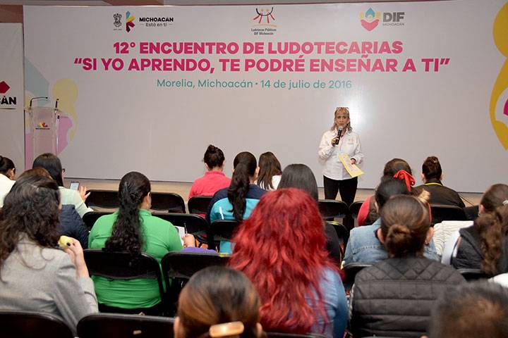 NOTICIAS 14/07/2016DIF Michoacán capacita a ludotecarias Con la participación de ludotecarias de 40 municipios del estado, la Directora General del Sistema para el Desarrollo Integral de la Familia (DIF) Michoacán, RocÃo Beamonte Romero dio inicio a los trabajos del 12º. Encuentro de Ludotecarias que este año tiene el lema "Si yo aprendo, te podré enseñar a ti".