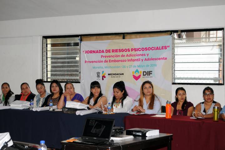 NOTICIAS 29/05/2016DIF Michoacán realizó Jornada de Riesgos PsicosocialesBajo la premisa de la prevención de adicciones y la prevención del embarazo infantil y adolescente, el Sistema para el Desarrollo Integral de la Familia (DIF) Michoacán, que dirige Rocío Beamonte Romero, a través del Departamento de Jóvenes y Niños en Riesgo realizó la Jornada de Riesgos Psicosociales para las y los promotores de 30 municipios.