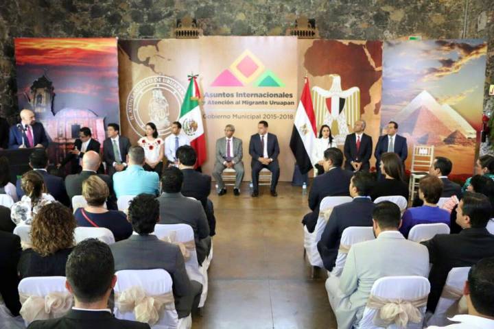 NOTICIAS 30/05/2016Atestigua titular de Semigrante presentación de proyecto de internacionalización de Uruapan - El secretario del Migrante del Estado, José Luis Gutiérrez, atestiguó la presentación del Proyecto de Internacionalización que organizó el Ayuntamiento de Uruapan con motivo de la visita de Adt Yasser Mohamed Ahmed Shaban, embajador de la República Árabe de Egipto en México, a este municipio.