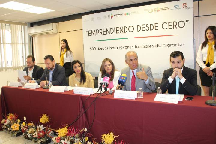 NOTICIAS 17/05/2016Ofrecerán 500 becas para jóvenes familiares de migrantes En el marco de la estrategia de vinculación con los michoacanos en el exterior y sus familias en México, las secretaría de Economía (SE) a través del Instituto Nacional del Emprendedor (Inadem), la Secretaría de Relaciones Exteriores (SER), a través del Instituto de los Mexicanos en el Exterior (IME), y la Secretaría del Migrante (Semigrante), abrieron la convocatoria del programa Emprendiendo desde Cero, que ofrecerá 500 becas para jóv... Ver más...