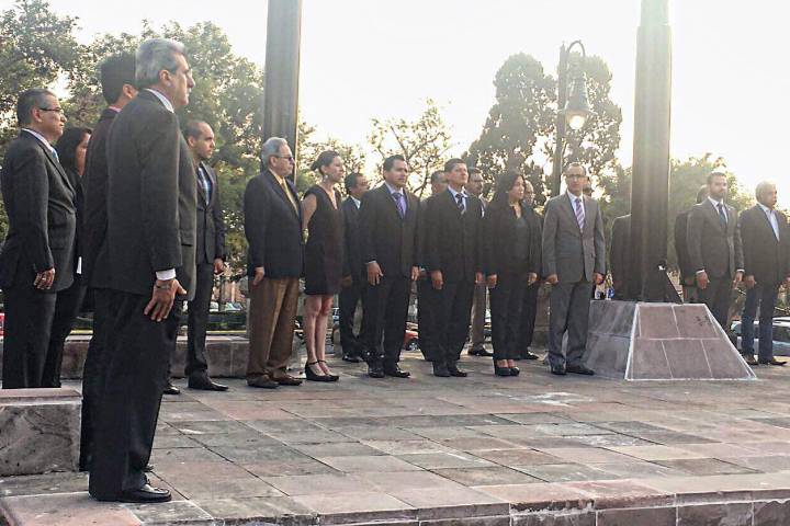 Reunidos en la Plaza Jardín Morelos, la mañana de este jueves los funcionarios municipales presentes, acompañados por estudiantes de nivel secundaria, rindieron honores al Lábaro Patrio para conmemorar esta fecha.
