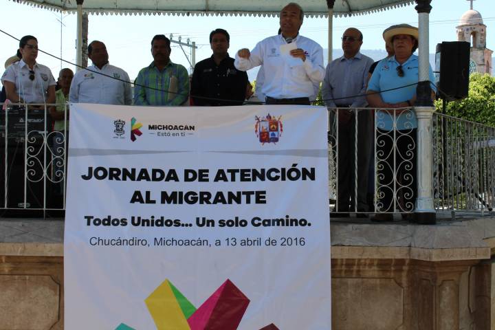 NOTICIAS 13/04/2016Este miércoles, Jornada de Atención al Migrante en Chucándiro La Secretaría del Migrante (Semigrante) llevó a cabo una Jornada de Atención al Migrante en este municipio, en la que 18 dependencias federales y estatales brindaron servicios y asesorías a migrantes y sus familias, así como a la población en general, quienes se vieron beneficiados al resolver sus trámites sin tener que salir de la demarcación.