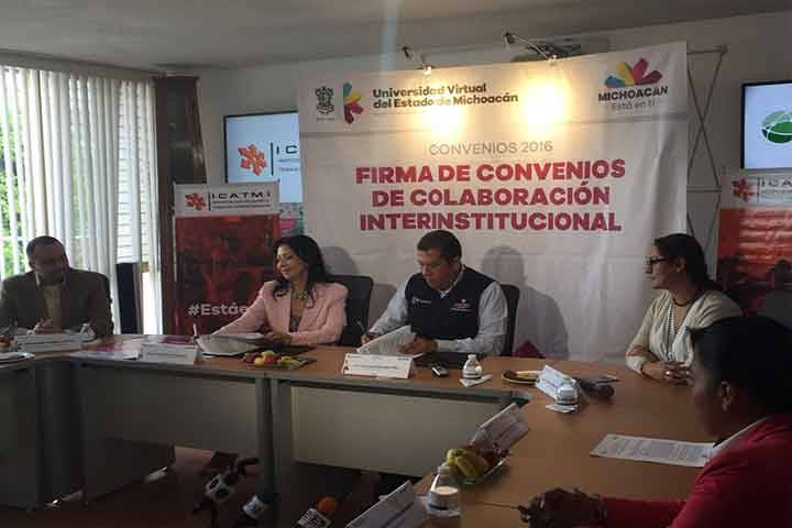 NOTICIAS 28/03/2016Accederán a educación superior capacitandos del Icatmi "La educación y la capacitación son indispensables para el desarrollo del estado y la profesionalización de las personas", precisó Juan Carlos Barragán Vélez, director general del Instituto de Capacitación para el Trabajo del estado de Michoacán (ICATMI), en el marco de la firma de convenio con la Universidad Virtual de Michoacán (UNIVIM).
