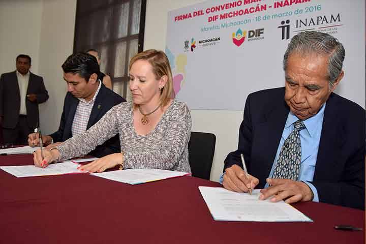 NOTICIAS 18/03/2016DIF Michoacán e INAPAM signan convenio favor de los adultos mayoresLa directora General del Sistema para el Desarrollo Integral de la Familia (DIF) Michoacán, Rocío Beamonte Romero, signó un convenio de colaboración con el Instituto Nacional de las Personas Adultas Mayores (INAPAM), con el objetivo de emprender acciones y establecer políticas públicas a favor de este sector de la población.