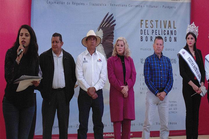 NOTICIAS 14/02/2016Clausuran el Festival del Pelícano BorregónEn representación del Gobernador Constitucional del Estado de Michoacán, Silvano Aureoles Conejo, y en seguimiento al tercer eje rector de su administración, Educación Pública de Calidad, Salud, Cultura y Recreación para todas y para todos, la delegada del Gobierno del Estado en la región Lerma-Chapala, Giulianna Bugarini Torres, realizó la clausura oficial del octavo Festival del Pelícano Borregón.