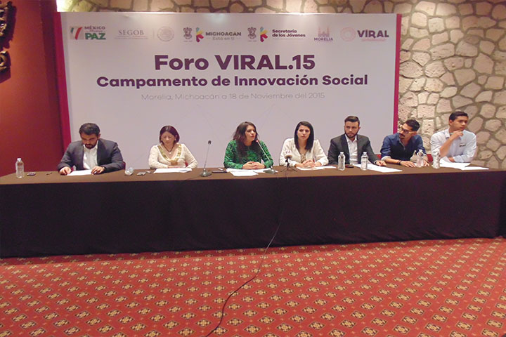 NOTICIAS 18/11/2015Lanzan convocatoria para Foro Juvenil VIRAL.15 Innovación SocialEn el marco de un trabajo coordinado entre la Secretaría de Gobernación, la red VIRAL y la Secretaría de los Jóvenes, Morelia será sede del Foro Nacional VIRAL.15, a realizarse del 10 al 13 de diciembre bajo la temática Innovación Social y en el cual participarán 200 jóvenes de todo el país.
