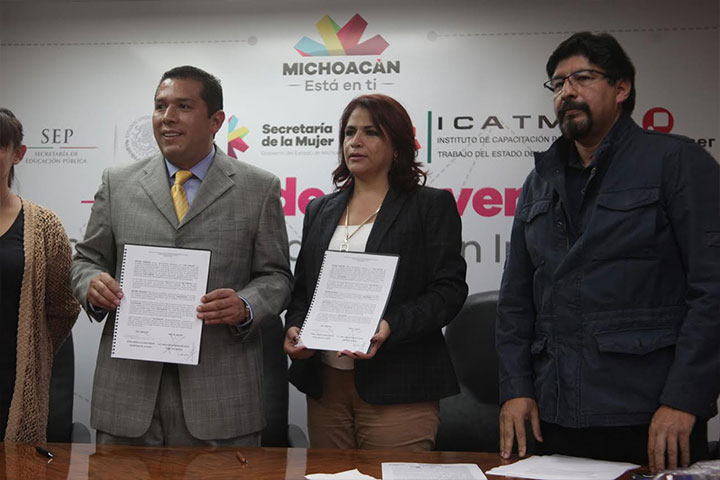 NOTICIAS 22/10/2015Otorgarán capacitación y certificación para el trabajo a 40 mil mujeres Como parte de los compromisos que asumió el Gobernador de Michoacán, Silvano Aureoles Conejo, con la agenda por las michoacanas, la titular de la Secretaría de la Mujer (Semujer), Fabiola Alanís Sámano, y el director del Instituto de Capacitación para el Trabajo del Estado de Michoacán (Icatmi), Juan Carlos Barragán Vélez, firmaron un convenio para cubrir una meta histórica de capacitación y certificación en competencias laborales ... Ver más...
