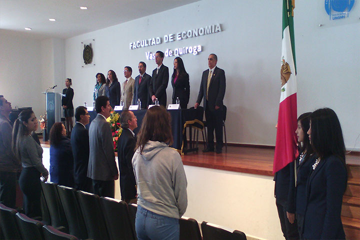 NOTICIAS 26/10/2015Asiste secretaria de Fomento Económico de Morelia a aniversario de Facultad de EconomíaLa secretaria de Fomento Económico, Ireri Rivera García, asistió a la ceremonia conmemorativa del 39 aniversario de la Facultad de Economía "Vasco de Quiroga" de la Universidad Michoacana de San Nicolás de Hidalgo (UMSNH).