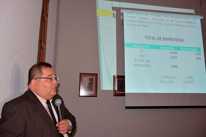 El encargado de presentar los resultados arrojados por 5 mil 850 encuestas que fueron aplicadas a colonos de 25 colonias adyacentes a la obras, fue José Odón ... Ver más...