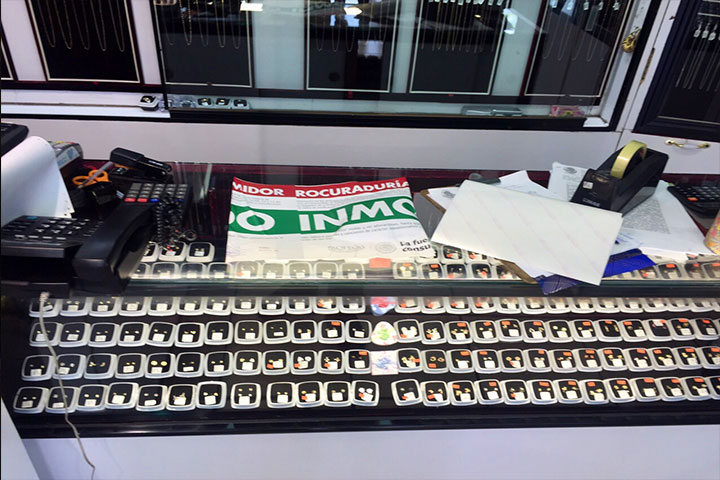 Como resultado de un operativo de verificación a joyerías implementado por la Delegación en Michoacán de la Procuraduría Federal del Consumidor se logró la inmovilización de diversos productos por no cumplir con la Norma Oficial Mexicana NOM - 033 - SCFI - 1994 referente a la información comercial de alhajas y la suspensión de 6 establecimientos por no exhibir a la vista del consumidor los precios de los artículos.