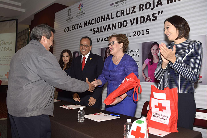 NOTICIAS 04/03/2015Catherine Ettinger encabeza entrega de material para la colecta de la Cruz Roja Catherine R. Ettinger de Jara, presidenta del Sistema para el Desarrollo Integral de la Familia (DIF) Michoacán y presidenta honoraria de la Cruz Roja en Michoacán, encabezó la entrega de material para la Colecta Nacional de la Cruz Roja 2015 en Michoacán, bajo el lema: "Salvando Vidas", cuya meta es recabar 5 millones de pesos.