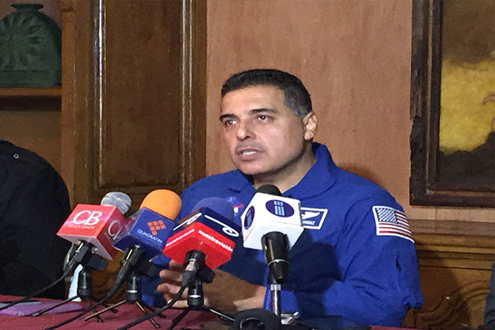 "Más bien los voy a regañar a ustedes lo medios por preguntar y fijarse en las cosas malas y no en lo bueno del estado", enfatizó el joven astronauta.