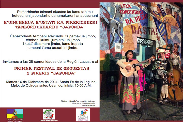 NOTICIAS 12/12/2014CEDH convoca a Festival de PirerisCon la finalidad de difundir la cultura y tradiciones de los pueblos indígenas de Michoacán, la Comisión Estatal de los Derechos Humanos (CEDH) convoca al Primer Festival de Orquestas y Pireris "Japonda".