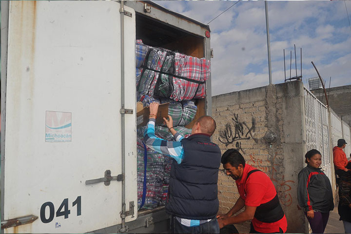Con el objetivo dar continuidad a los programas sociales y de apoyo que opera el Sistema para el Desarrollo Integral de la Familia (DIF) en Michoacán, que preside Catherine R. Ettinger, este domingo se hizo entrega de 2 mil cobijas para igual número de familias en 19 colonias marginadas del Norte de Morelia.