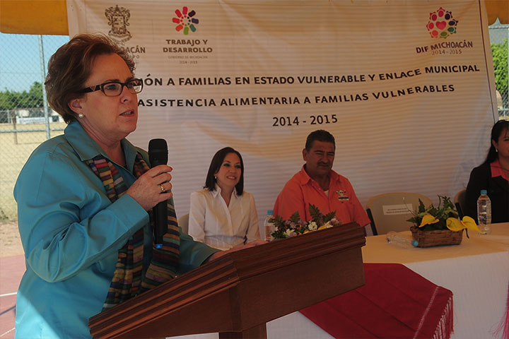 Con el compromiso de dar continuidad a los programas alimentarios, la presidenta honoraria del Sistema para el Desarrollo Integral de la Familia (DIF) Michoacán, Catherine Ettinger entregó 8 mil 688 despensas en el municipio de Apatzingán en beneficio de igual número de familias.
