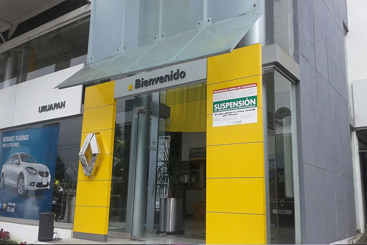El día de ayer lunes en un operativo de verificación realizado por la Procuraduría Federal del Consumidor Delegación Michoacán en el municipio de Uruapan, se suspendieron las agencias de automóviles Nissan y Renault por diversos incumplimientos a la Ley Federal de Protección al Consumidor y a la Norma Oficial Mexicana NOM-174-SCFI-2007 referente a las prácticas comerciales para la prestación de servicios en general.