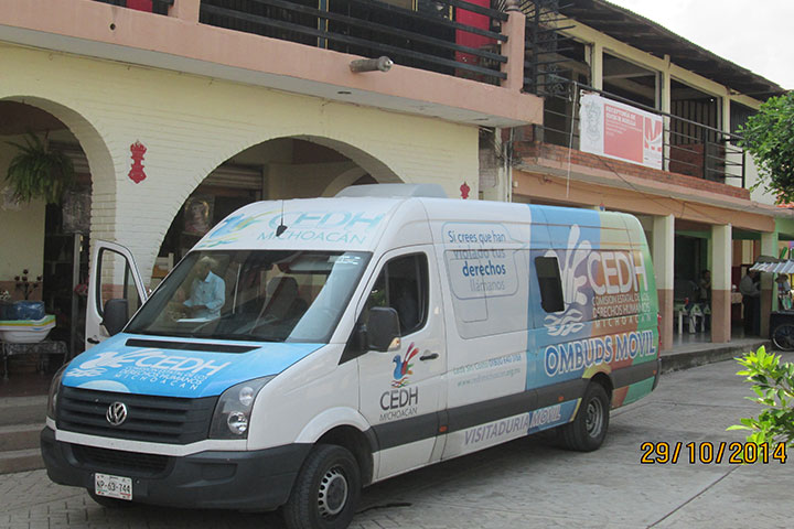 NOTICIAS 30/10/2014Ombudsmóvil recorre Tierra Caliente La Visitaduría Móvil de la Comisión Estatal de los Derechos Humanos (CEDH), denominada Ombudsmóvil, continúa realizando recorridos por las diversas zonas de la entidad con la tarea de promover y difundir los derechos humanos; así como para acercar los servicios del organismo, particularmente a zonas alejadas.